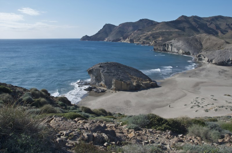 Playa de Mónsul is één van de meest iconische stranden van Cabo de Gata en herkenbaar aan de grote vulkanische rots midden op het strand.
